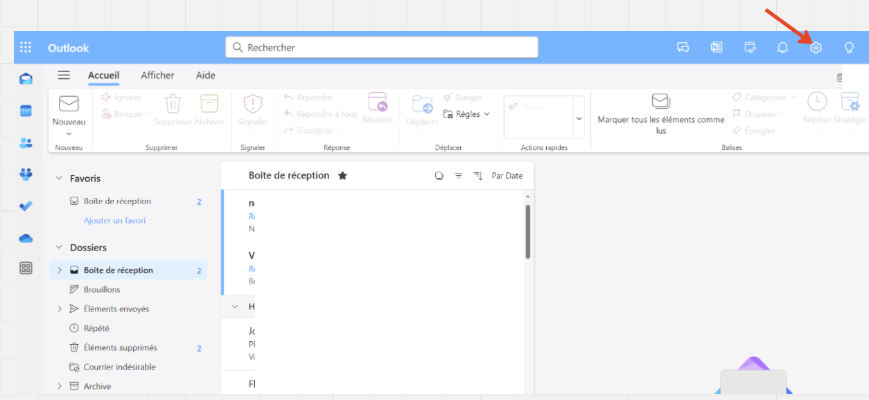 1.3 Cliquez sur la roue "Paramètres" en haut à droite